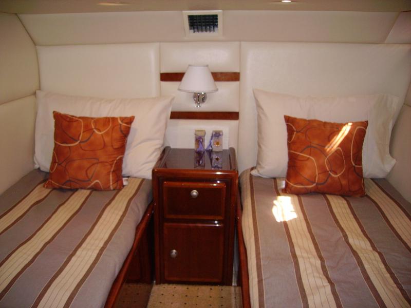 50 Feet Lexurious yacht - fully air conditioned with 3 bed rooms with a sleeping capacity of 6 pax. The yacht has a sitting room with television, refrigerator, microwave oven, The yacht have a fly bridge with a seating capacity of 8 pax. The total capacity of the yacht is 15 pax good for dolphin watching, snorkeling, coastal cruise, fun fishing, overnight trip etc.